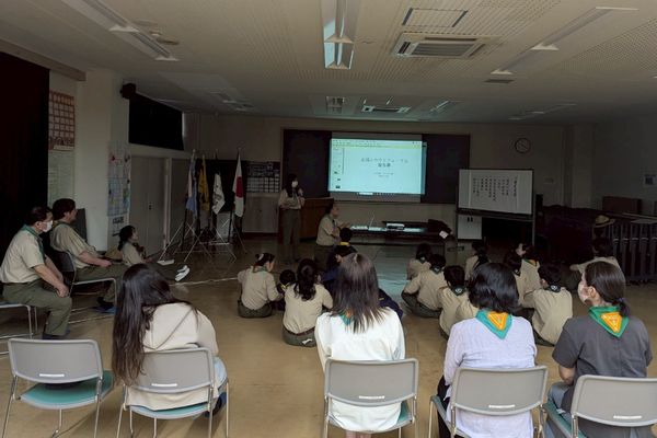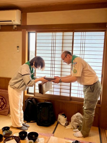 ベンチャー隊、ボーイ隊、カブ隊に見守られて、緊張しながらも「やくそくとさだめ」を隊長の前でちゃんと言うことができました。これから一緒に楽しく活動していきましょう!!