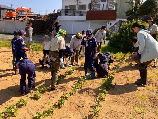 スカウトたちも、野菜を切ったり、みんなで収穫した山栗をアルミにくるんだりして手伝います。野菜はいつもお世話になっている農園さんからもいただきました。ありがとうございました。