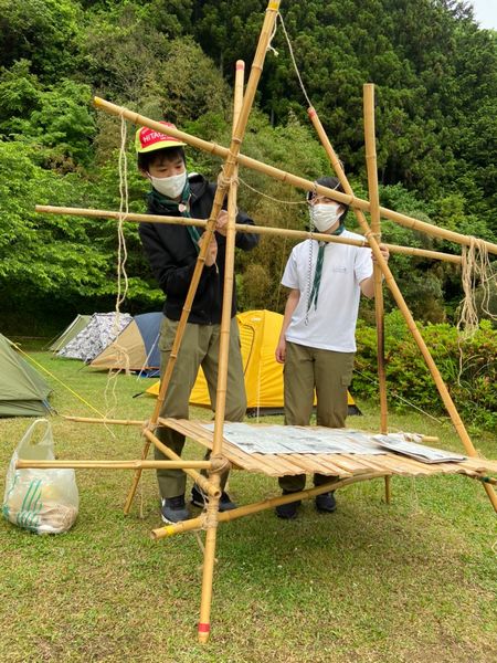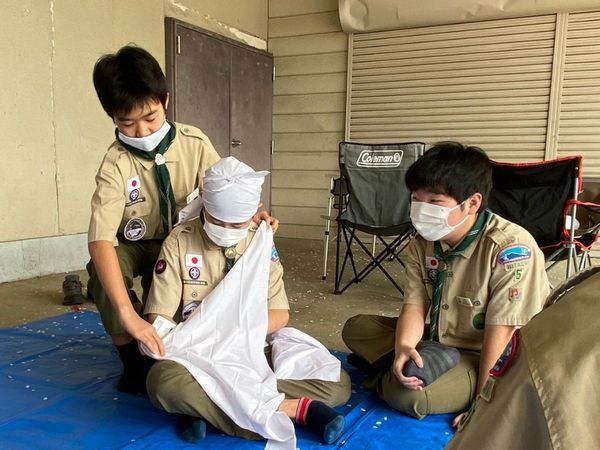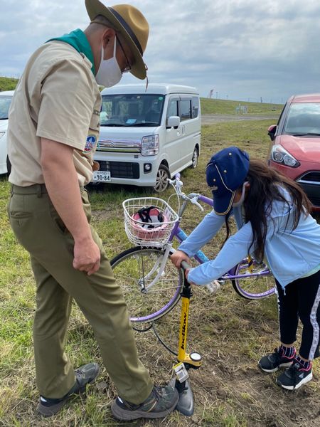 9月の秋晴れのさわやかな日に、高萩ふれあいの里フィッシングエリアで、新しいお友達の入隊式を行いました。カブ隊うさぎスカウト1名、ビーバー隊1名です。