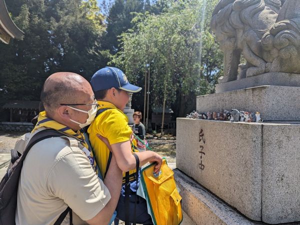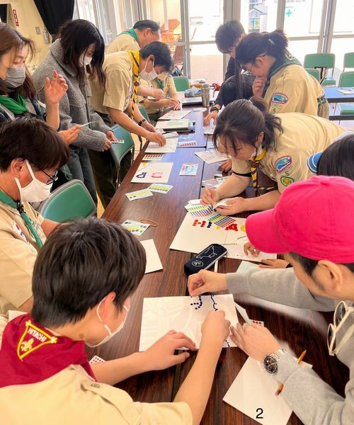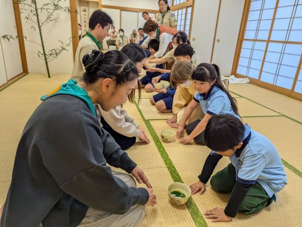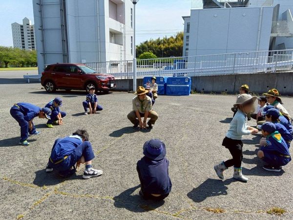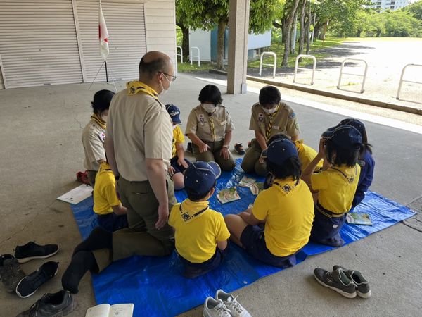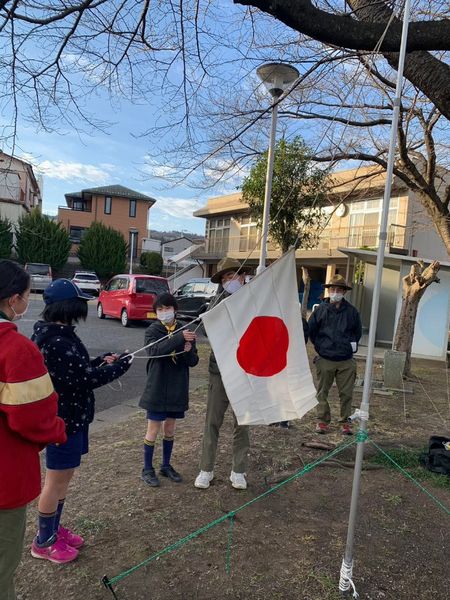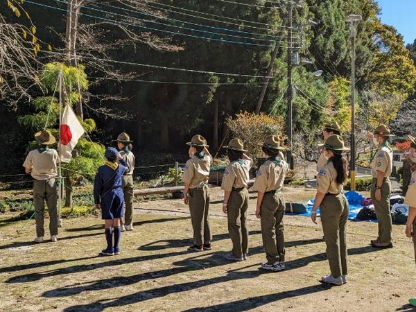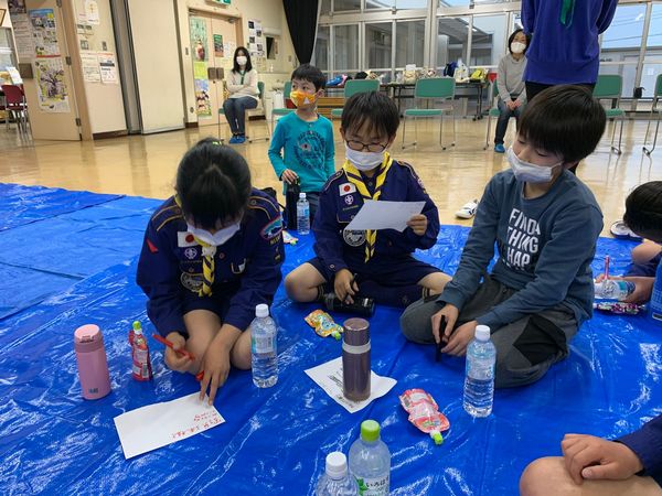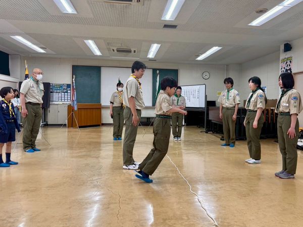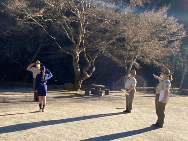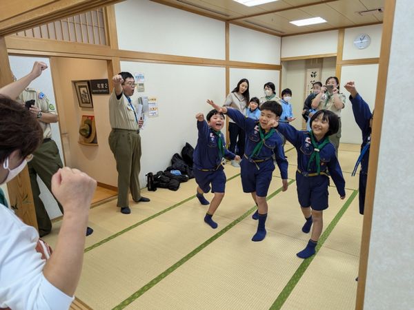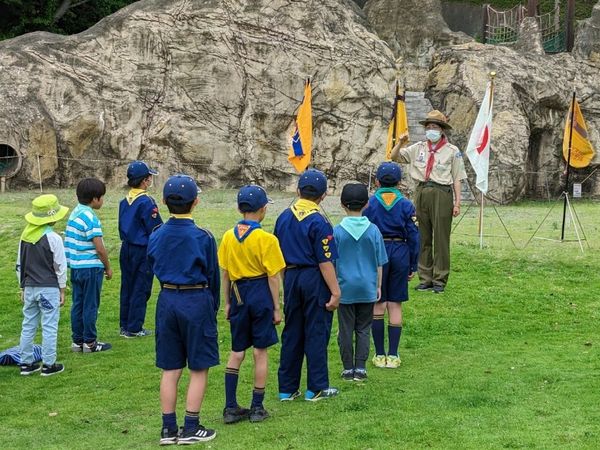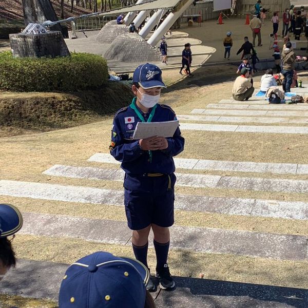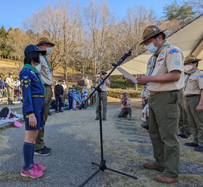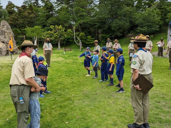 ベンチャー隊、ボーイ隊、カブ隊に見守られて、緊張しながらも「やくそくとさだめ」を隊長の前でちゃんと言うことができました。これから一緒に楽しく活動していきましょう!!