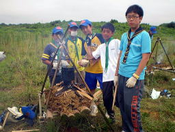 | 韓国スカウトが一緒にキャンプをしました。 スカウトたちはこの日のために一生懸命韓国語を勉強してきましたが、さて、通じたでしょうか。 | |
