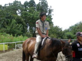日立5団ボーい隊初の乗馬訓練をおこないました。 スカウトの2年越しの希望をかなえた活動は、みんなの目をキラキラ輝かせました。 初めてとは思えない乗りっぷりでしょ?! |