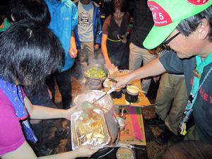 | 片付けが終わり、閉村式の前の、くつろぎのひと時です。充実感にあふれています。 | |