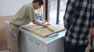 VS隊のお別れ会です。 高原自然塾で「そば打ち」に初体験。隊長に教えてもらいました。 はじめてなのに手つきがいいので味も期待大! 天ぷらも自分たちで揚げておなかいっぱいいただきました。 |